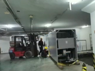 天津青年宮空調(diào)機(jī)組拆解吊裝蜘蛛吊地下室